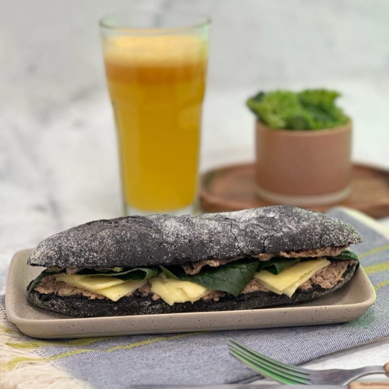 Baguette de masa madre infusionada con tinta de Calamar, artesanal