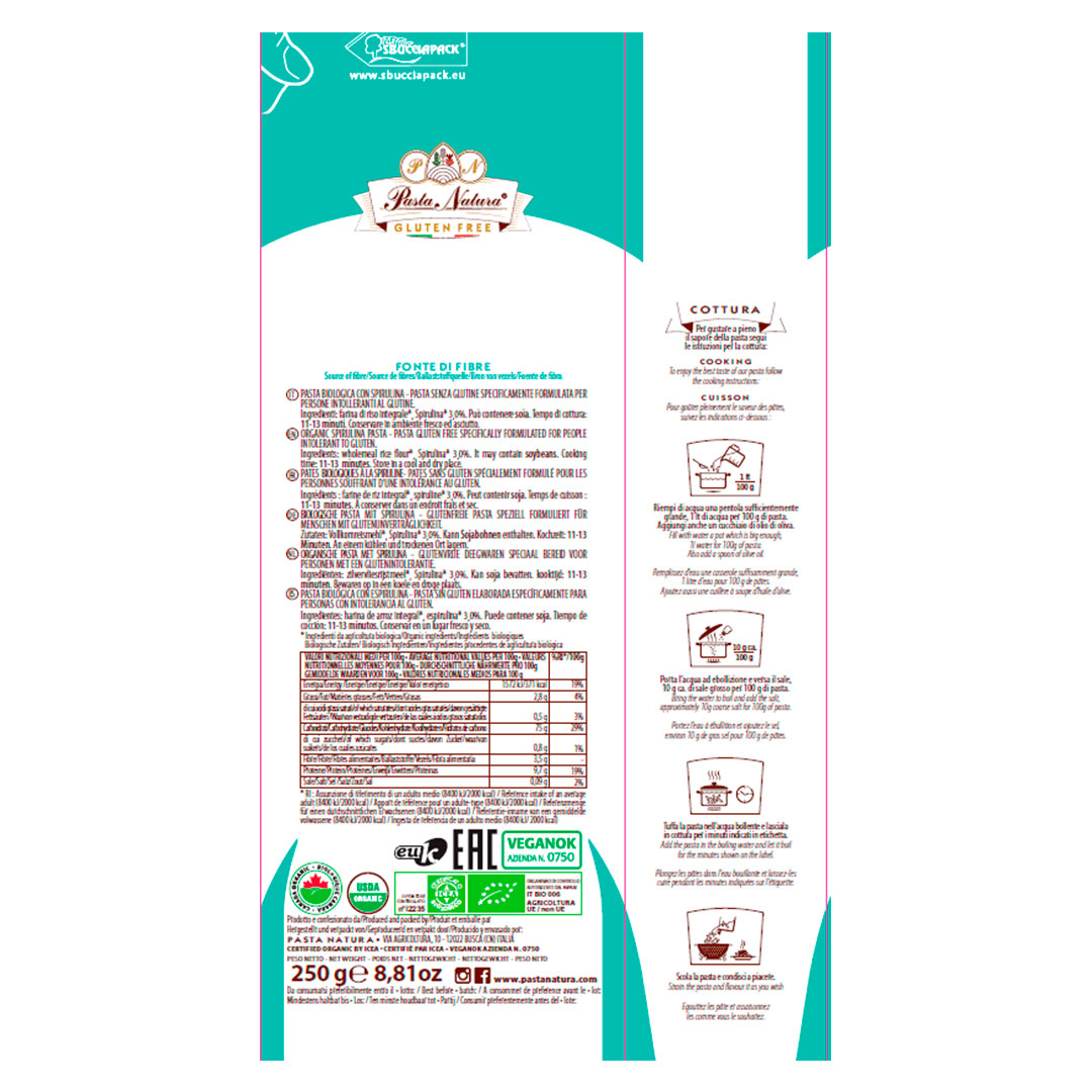 250 grConchas o “Conchiglie” con espirulina orgánica es naturalmente libre de gluten y se produce sin ingredientes de origen animal. Es perfecta para la dieta de celíacos y veganos. Rica en proteínas, imprescindibles para una dieta equilibrada. La espirulina le da a la pasta un característico color verde oscuro, perfecto para jugar con los colores en la mesa. El sabor de esta pasta es delicado y agradable, va bien con cualquier tipo de salsa.