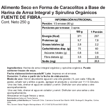 Sé el primero en valorar “Conchas de Arroz Integral y Espirulina, Orgánico, Sin Gluten, Vegano, 250 gr, Marca Pasta Natura”