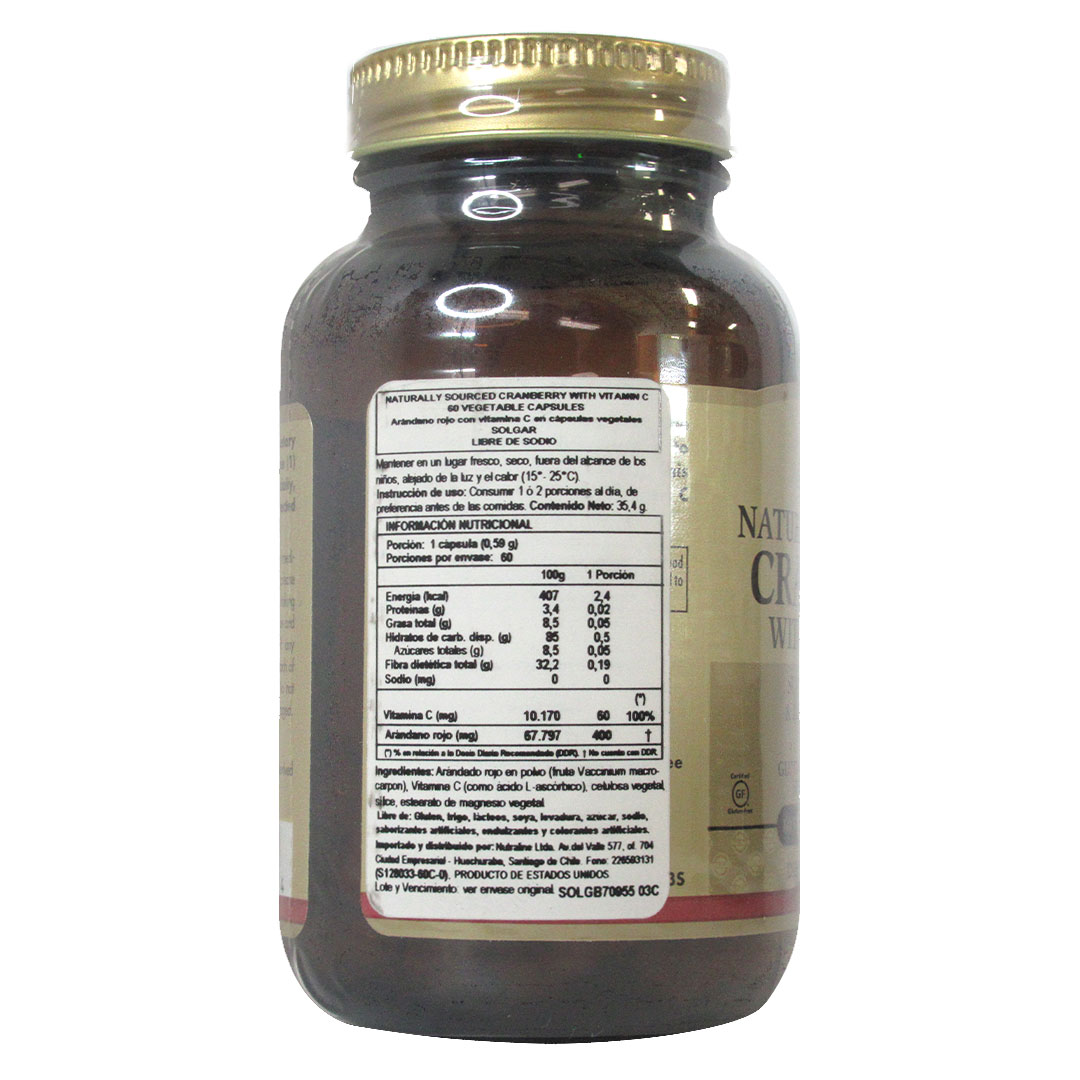 Cranberry con Vitamina C Libre de Lacteos 60 Capsula Marca Solgar
