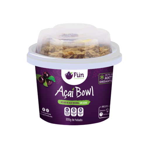 ¡No te preocupes! Los Açaí Bowl Fün son la solución rápida y saludable para disfrutar un rico açaí en tu casa, oficina, caminando, en la micro o donde tú prefieras. ¡Vienen listos para abrir y cucharear!